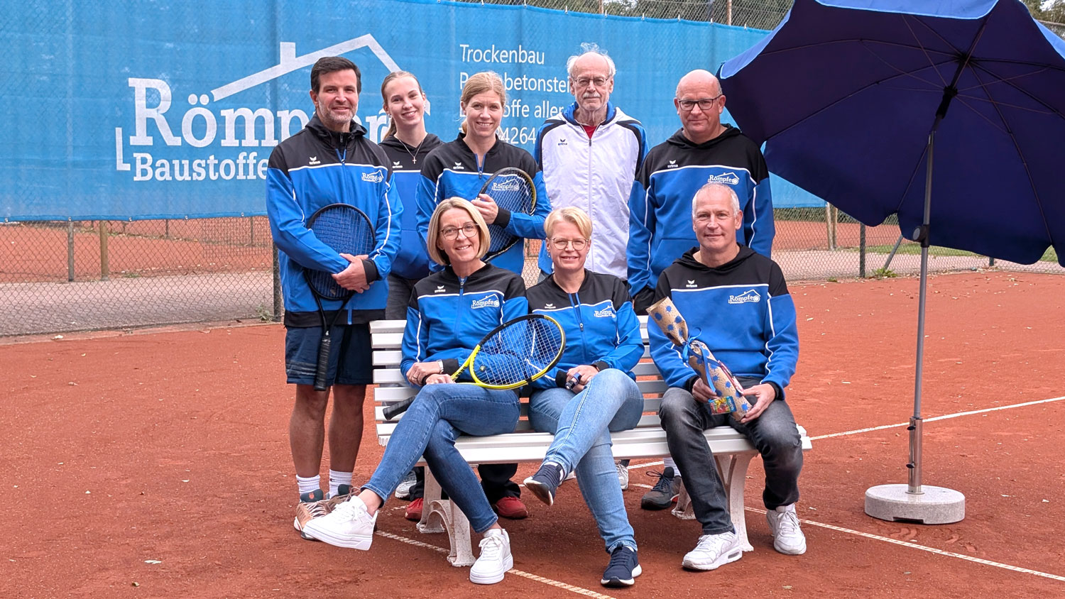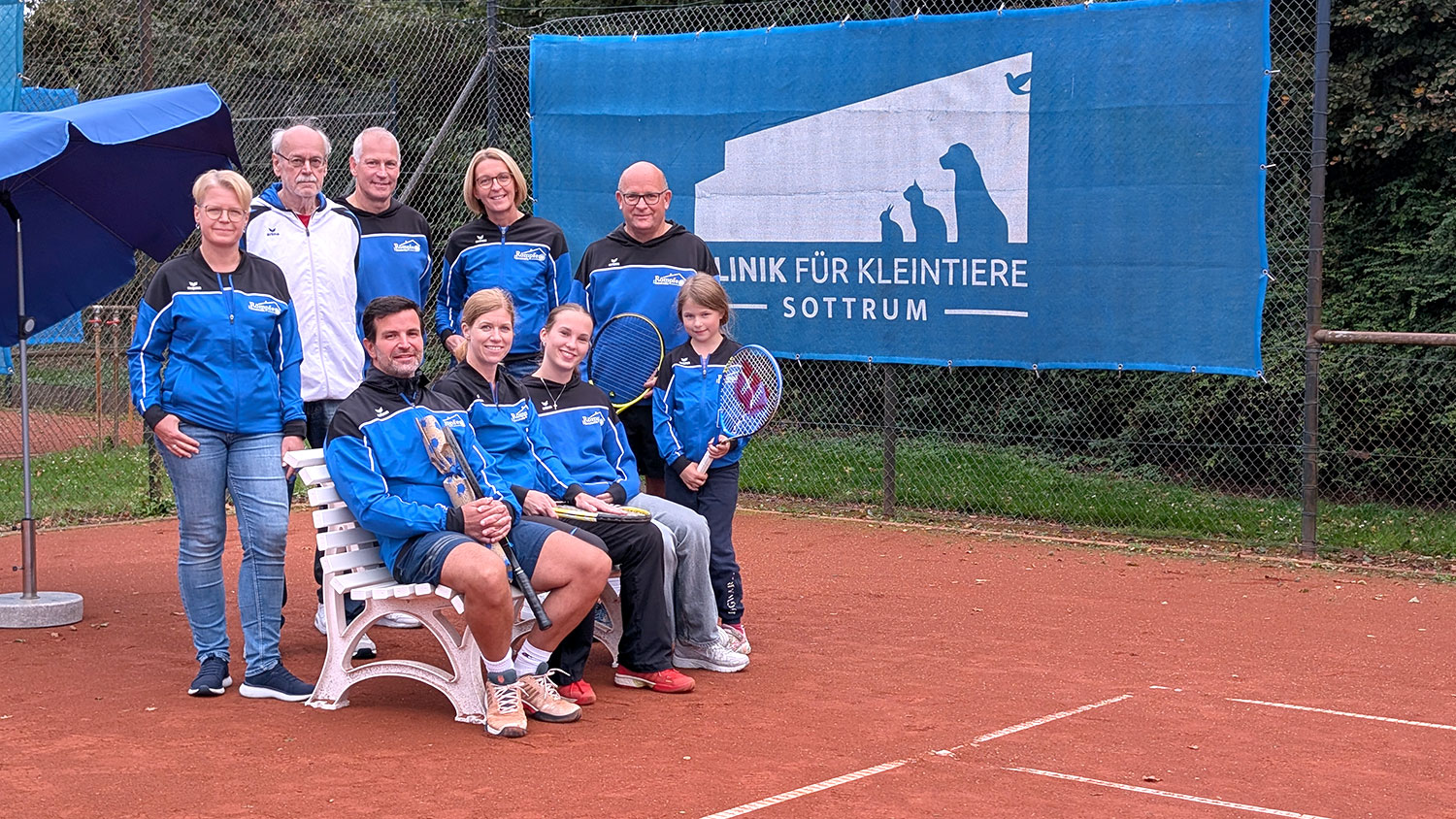 Unsere beiden Sponsoren, die Klinik für Kleintiere und Römpfer Baustoffe, haben für unseren Center Court auf Platz 4 noch weitere Ausrüstung gesponsort. Es gab neue Bänke und Sonnenschirme und ein schönes neues Banner am kurzen Zaun.
