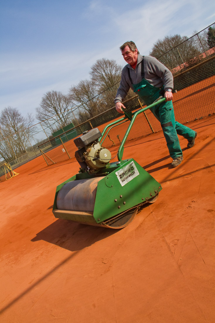 Mit viel Schwung und Elan ging es daran den alten Sand von den Plätzen zu schaufeln und Platz für den neuen Sand zu schaffen. Es wurde geharkt, gemäht, gewalzt. Die Beete wurden gejähtet und das Clubhaus herausgepuzt. Nun erstrahlt alles wieder im neuem Glanze.